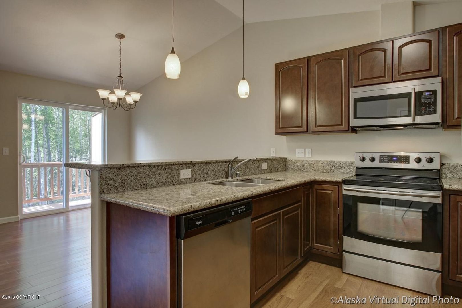 Amazing layout in the 3 bedroom 2.5 bathroom Wasilla condo! Condo features a private fenced yard, stainless steel appliances, granite countertops, laminate flooring in living room and bathrooms, large walk in closet off of master bedroom, carpet in bedrooms and stairs. Lovely back deck and patio off of back of the unit and a fully fenced in yard. Dog(s) allowed upon approval with additional pet deposit and pet rent.